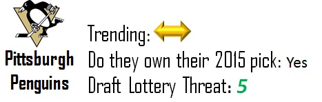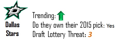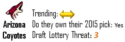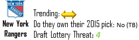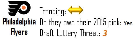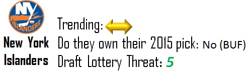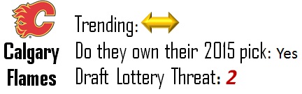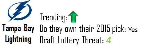 Tampa has two picks in 2014 and 2015 thanks to the Rangers. While they’re currently second to the Sabres in terms of overall picks in the McDavid draft, I don’t expect to see either of those picks wind up in the top-10, let alone the top-5. They’re a slight threat to move up, but given the strength at the top of the draft I doubt they pose any threat to the Sabres at this point.