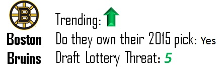 Like the Oilers, Florida sits in the top-three yet again (the third time in four years for the Panthers) and face a multitude of needs in terms of rebuilding their roster. Even with the assumed selection of Aaron Ekblad, Florida will still need quite a bit of help to start their ascent from the league’s basement. They should be lurking in the bottom five of the league yet again next year.