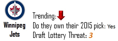Winnipeg has a handful of supremely talented players. They also have very questionable goaltending and some serious holes to fill. They pick ninth this year and I could see another top-10 selection in their future for 2015.