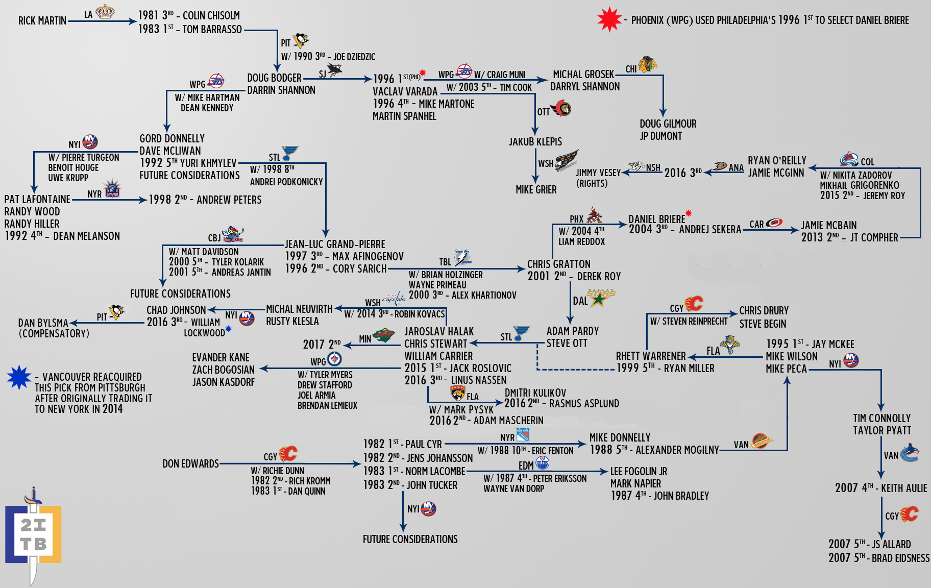 This is the most up-to-date version of the trade tree, updated to include Buffalo’s offseason moves in 2016. Another update will be coming soon to clean up some areas in terms of formatting and clarity.