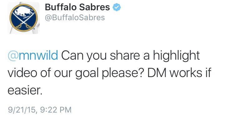 There didn’t seem to be an adequate set of expectations for when fans might get to actually see highlights last night. That simply added to the general frustration to the lack of TV coverage. Asking the other team if you could maybe, please have a highlight clip in a public forum will simply added fuel to the fire. (It’s also a good way for Lindy Ruff’s Tie to shoot out a Straight Outta Compton meme about the highlights – something I retweeted after seeing the Sabres retweet a guy with coon (yeah, the derogatory version) in his Twitter handle who sent them a photo with said meme last week.)