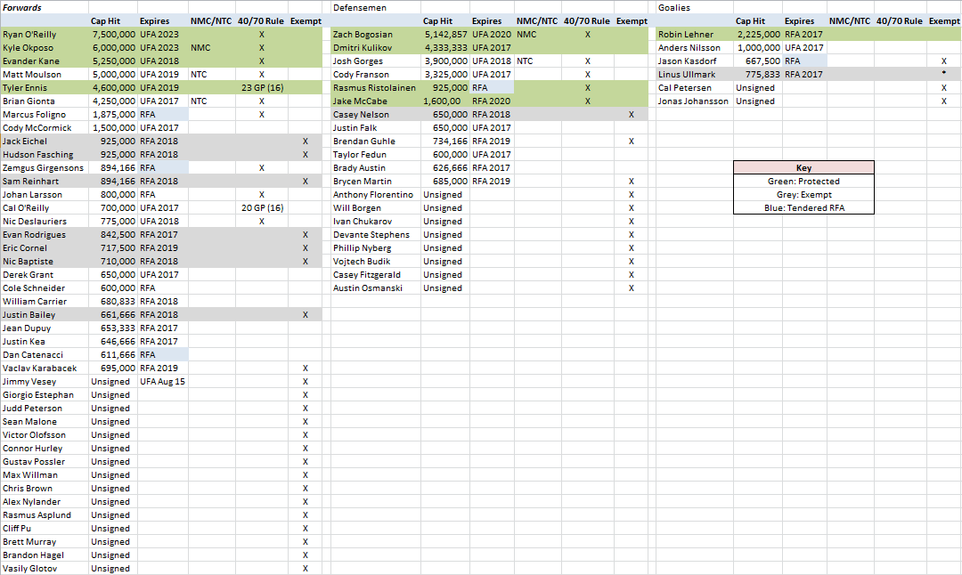 With that being considered, the eight players I’d keep for the Sabres are Rasmus Ristolainen, Zach Bogosian, Kulikov, Jake McCabe, Ryan O’Reilly, Kyle Okposo, Evander Kane, Tyler Ennis and Robin Lehner.