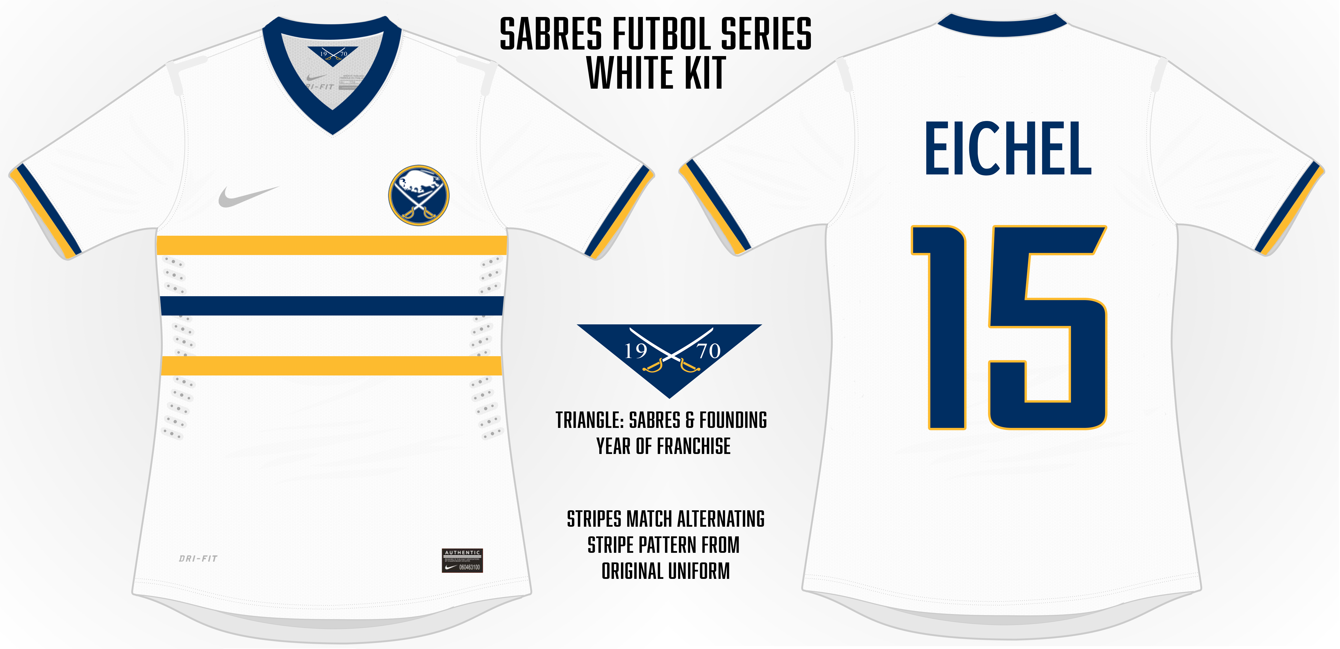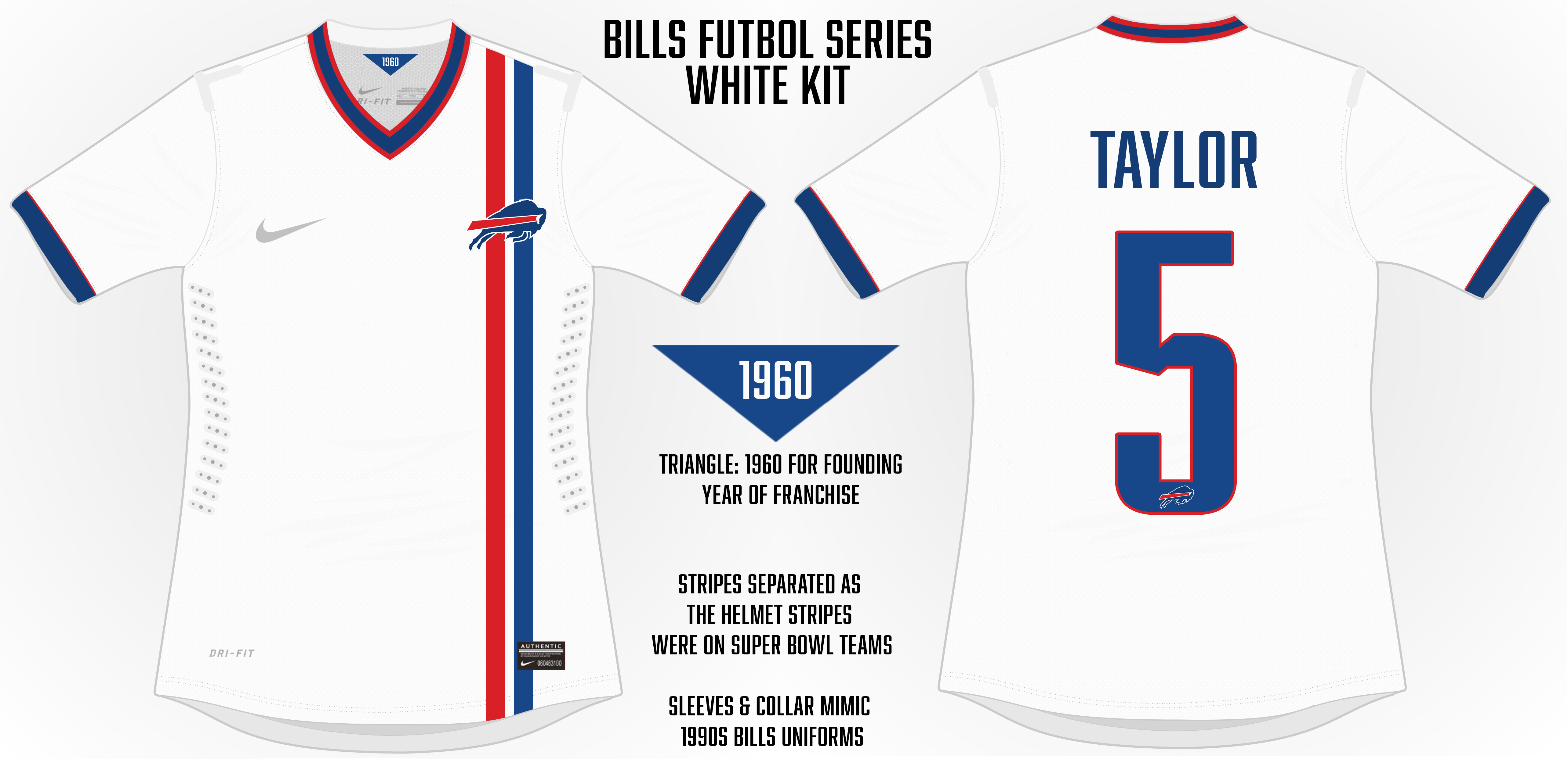 So as I started doodling I realized the Bills and Sabres could develop a line of apparel – jerseys in this case – which capitalizes on the love design-oriented people have for creating concept jerseys. I dubbed this “line” of apparel the Futbol Series and applied it specifically to the Bills and Sabres.