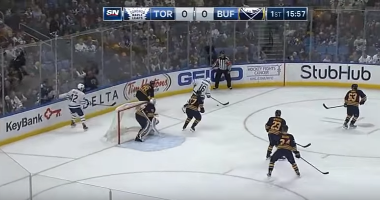 The play itself really unraveled early on as Zemgus Girgensons lost the puck in behind the net where Marner was able to exploit both Girgensons and Dmitri Kulikov off the loose puck.