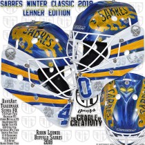 8. Robin Lehner (2018 Winter Classic) – Lehner’s mask for the Winter Classic featured many of the most modern paint features; a matte finish, small details that come into focus as you get closer accompanied by big, bold features. The stunning Sabres faux-throwback logo is a perfect centerpiece for the top of the mask and the adapted jersey stripes stand out beautifully from the white base. I love the Hasek tributes that were included and even the understated Winter Classic and Sabres logos look good.