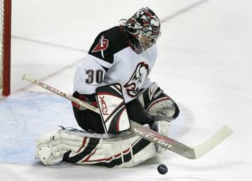 Picking my favorite set up of Miller’s is tough since my favorite mask of his debuted in 2011-12 when he added the Buffalo script to the chin of his iconic bison head mask. He had an awesome set of Vaughn V6 pads in 2014 (when he finally abandoned the Frankenpads) and his Koho 580 set from early in his career was elite. However, my favorite is pictured here. The Vector graphic he picked up towards the end of 2005-06 looked awesome in Buffalo’s red and black and remains a cool pad graphic to this day. It wasn’t the greatest retail pad and the graphic looked better on Miller’s pads than at retail, but the arrow graphics played well in the Sabres color scheme. It also looked pretty close to the mismatched RBK Premier blocker he started to wear after breaking his thumb. So that’s my choice.