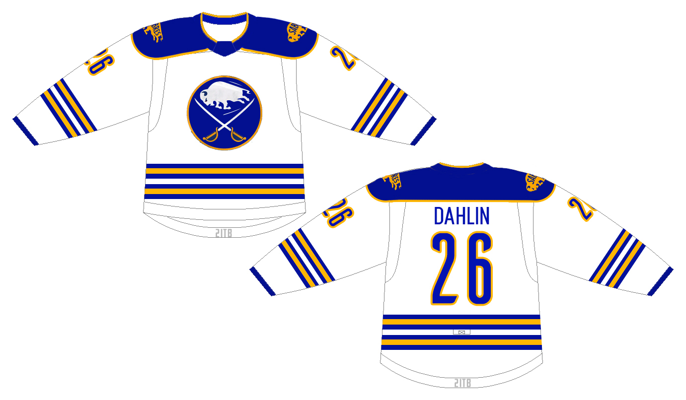 They’re both based off previous designs less than being any sort of original creation. So my level of involvement is equivalent to that of writing a Buzzfeed listicle. I just wanted to play around with a couple of ideas on a jersey set that would be different from what the club has been wearing while staying rooted in a traditional look and feel. These two templates do that well while also blending nicely with modern elements. I’m looking forward to your positive and negative feedback on these while we count down the last few hours until the Sabres drop their new jerseys on Tuesday morning.