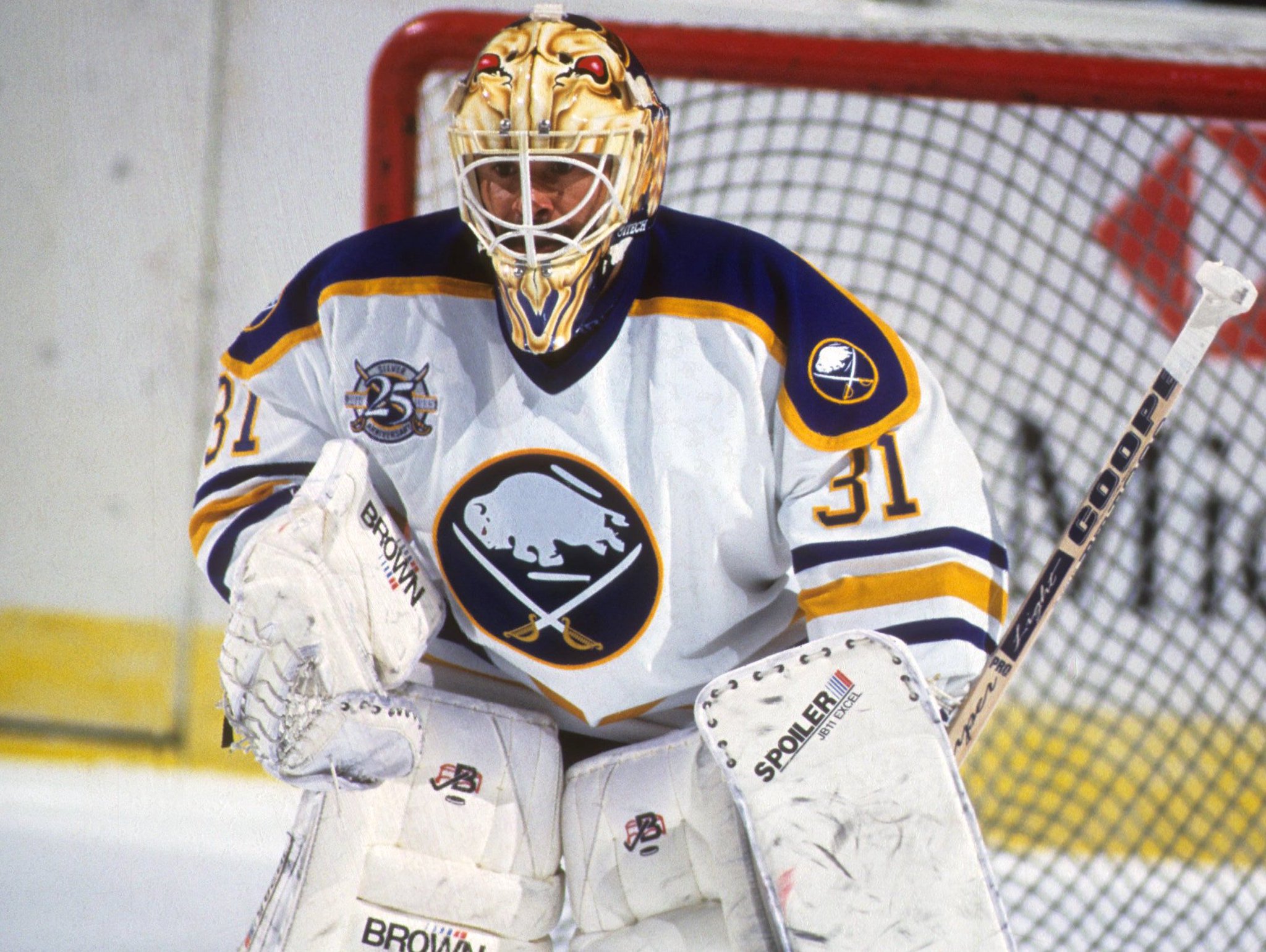 As a goalie gear fanatic I think I might appreciate more than some how Joseph carried his CuJo design with him at nearly every stop of his career. The colors were always on point and even when he was playing for teams whose nicknames had nothing to do with a dog or a wolf, the mask worked perfectly with their uniforms. His masks in Toronto were especially awesome and I can’t imagine you’d find too many people who would debate the quality of his mask art. Honorable mention to Joseph’s oil drop mask which he wore in Edmonton for a short period and with Team Canada at the 96 World Cup of Hockey.
