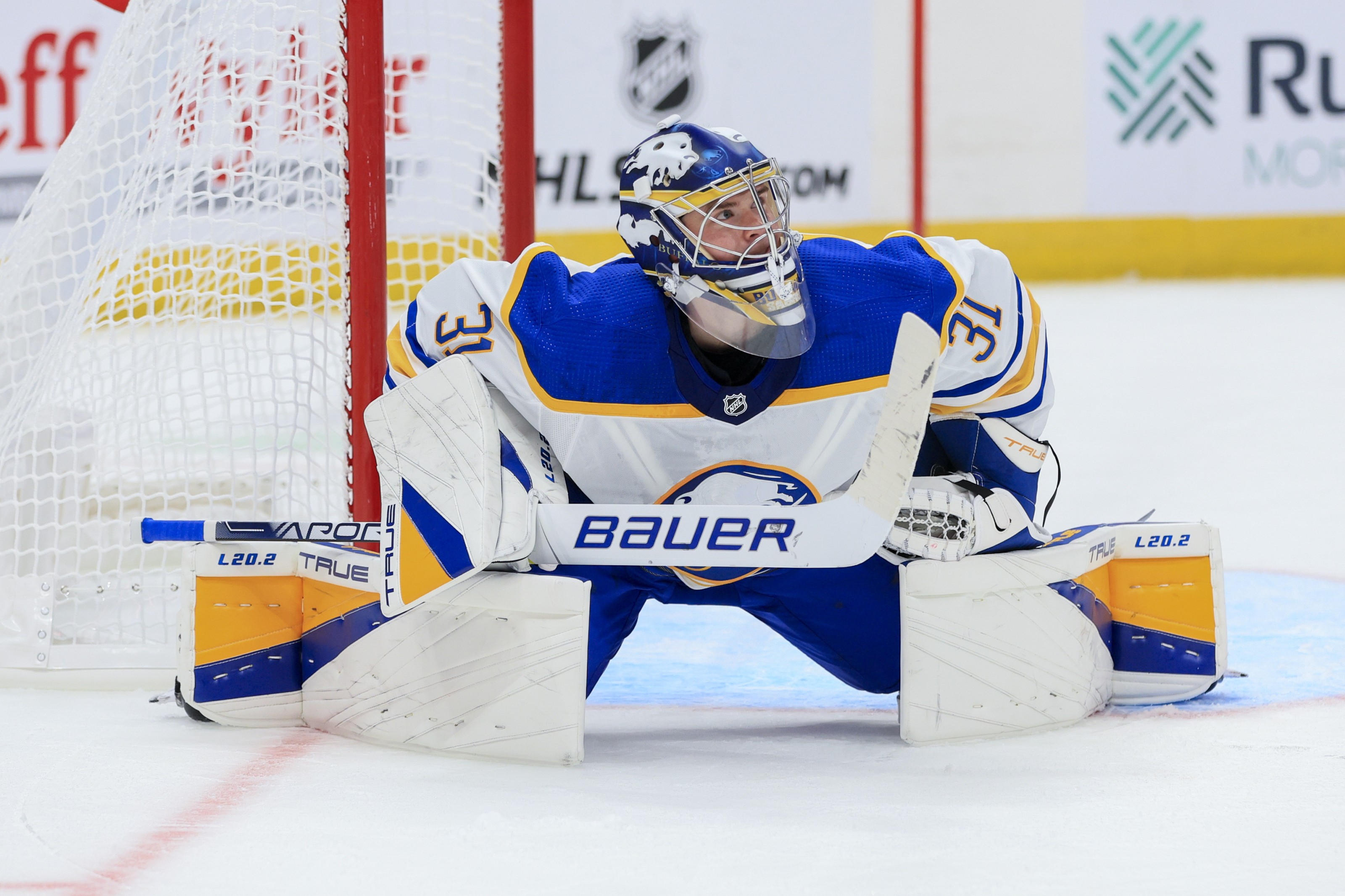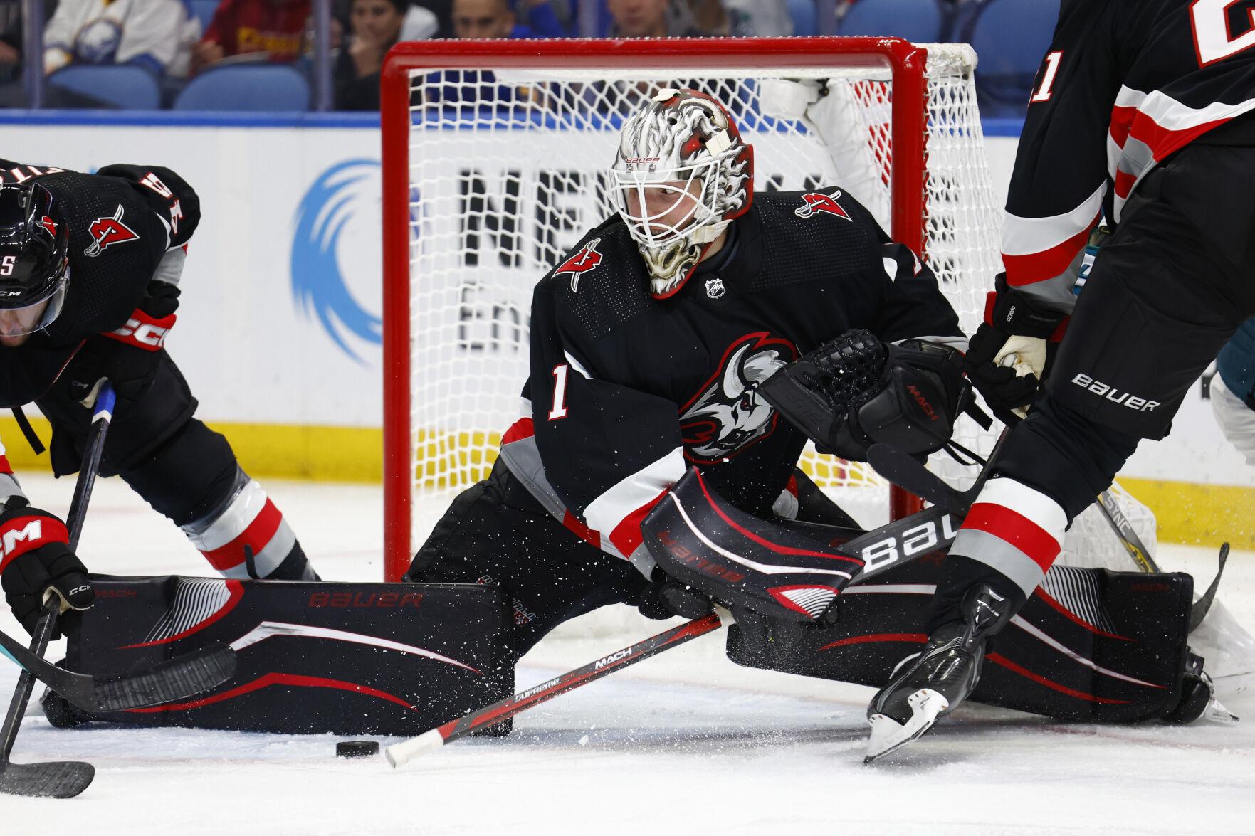It’s taken a little longer than usual due to the late-November launch of the Sabres alternate jersey but all the different sets of gear worn by Buffalo’s goaltenders have now seen the ice (with the exception of Eric Comrie’s black and red setup).