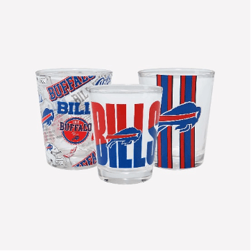 Take your touchdown celebrations up a notch with a set of Buffalo Bills 3 Pack Shot Glasses. I’m partial to the glass with the double stripe and charging buffalo logo. But all three can make your gameday celebrations that much more fun.