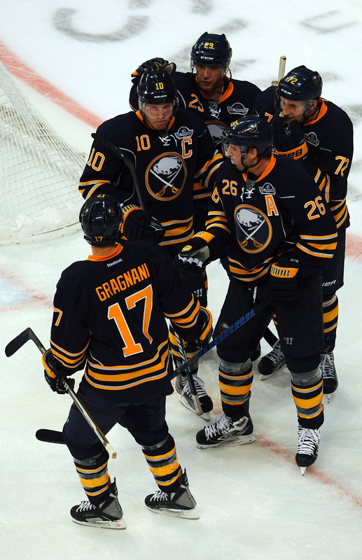 Luke Adam and Tyler Ennis each scored twice, although Adam’s second goal was awarded to Thomas Vanek. Christian Ehrhoff scored on his native soil, as well. From the sound of it, The Ville Leino, Brad Boyes and Ennis line was deadly for the entire game, something that will hopefully carry over to Friday and Saturday.