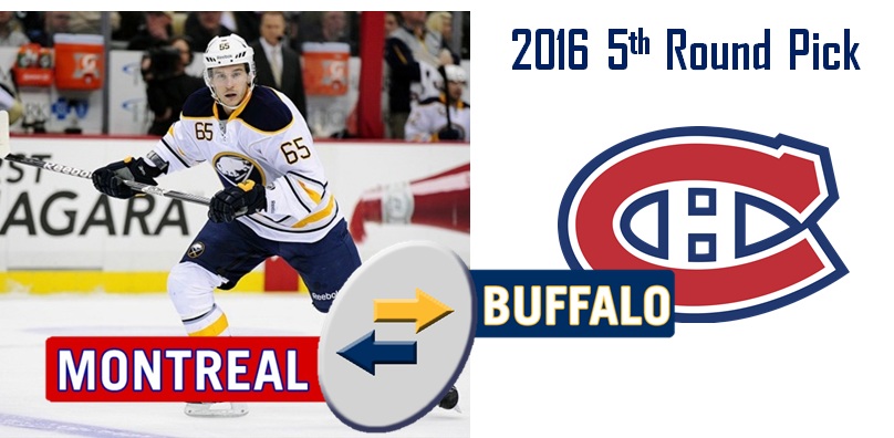 Buffalo acquires a 2016 5th Round pick from Montreal for Brian FlynnFlynnFlynn is an RFA, so it’s plausible to assume that Tim Murray wasn’t planning on qualifying him this summer. He’s a very serviceable player and I saw him as a nice fourth line forward once the roster rounded out. He does a good job on the penalty kill and has begun to show some offensive upside in the right situation.