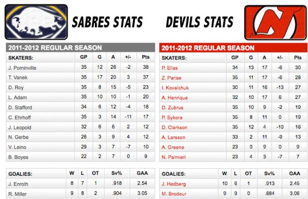 - It is convenient the Marty Brodeur brings his A-game against the Sabres every game, even in an off-year. He robbed the Sabres on multiple occasions and has been sterling for the entire season series.