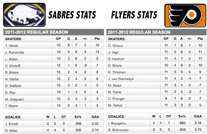 - Speaking of the team MVPs. Thomas Vanek and Pominville continue to amaze. Another pair of goals from the team leaders while the rest of the forwards sit back and watch. If I was a player wearing a different number than 26 or 29, I’d be fearful of finding a new apartment in the next two weeks.