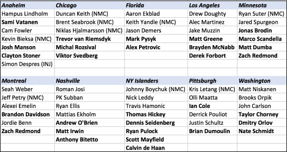 Players in bold are likely to be left exposed in expansion, thus potential targets on the trade market.