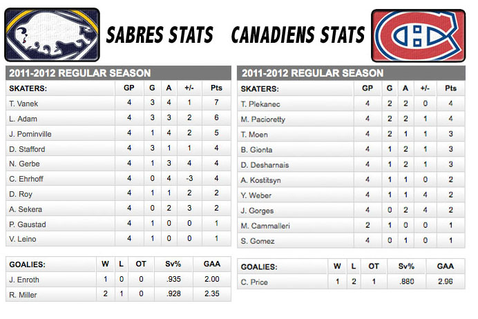 In the meantime, the Vanek-Hodgson-Pominville line continues to be the only trio worth their salary as they attempt to carry the Sabres through the dismal stretch of hockey. Vanek’s torrid start was paced by a two-goal, two-assist weekend while Hodgson (1+1) and Pominville (1A) got in on the act Sunday.